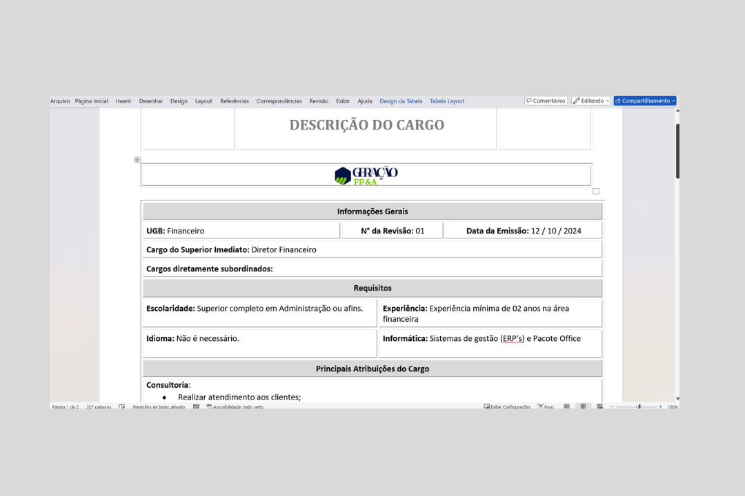 Estruture as responsabilidades e expectativas dos cargos dentro da empresa do seu cliente, facilitando a gestão de pessoas e o alinhamento de equipes.