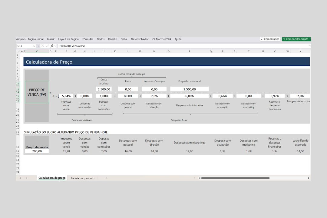 Defina o preço ideal dos produtos e serviços dos seus clientes, considerando custos e margens de lucro.
