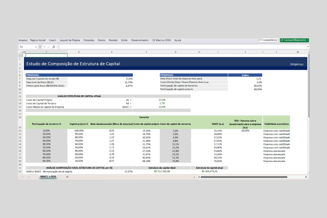 Oriente seus clientes sobre a melhor estrutura de capital, equilibrando o uso de recursos próprios e de terceiros.