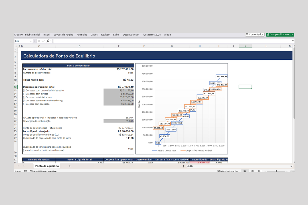 Descubra o ponto de equilíbrio do negócio do seu cliente e saiba exatamente o quanto ele precisa vender para cobrir os custos e começar a lucrar.